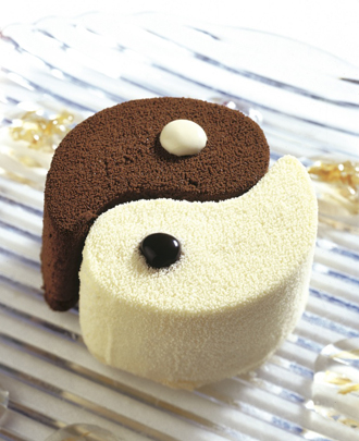 Choisissez des moules en forme de goutte, tapissez le fond d'un biscuit, recouvrez d'une couche de mousse de chocolat blanc puis lissez les bords, mettez un peu de confit de fleurs de jasmin au centre et recouvrez de la même mousse.
